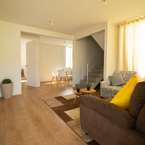 Con doble piso y más amplia, la casa Misti es una vivienda ideal para las familias que requieren más espacio y comodidades, cuenta con una sala acogedora para la familia, un comedor donde los almuerzos y cenas se puedan disfrutar en compañía, una cocina con todo incluido para hacer inolvidables recetas, una lavandería completa, un baño completo, un estudio, escaleras interiores al segundo nivel, un dormitorio principal y dos secundarios, una sala de estar, baño principal y uno secundario, un walk-in closet, una cochera y hermosas áreas verdes alrededor.
